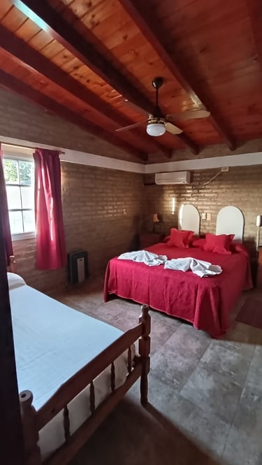 Ofrece dos ambientes, sommier o camas sommier, aire acondicionado o calefacción, ventilador de techo, TV LCD con cable y WiFi libre.