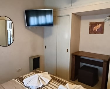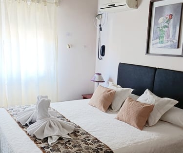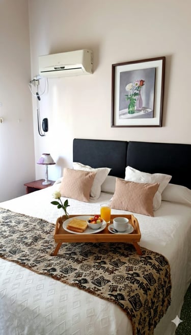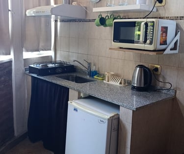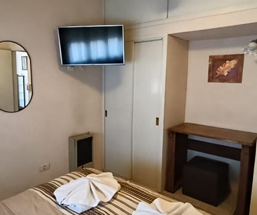 Cuenta con sommier queen, ventilador de techo, aire acondicionado y calefacción, TV LCD con cable y te recibimos con un coffee de bienvenida.